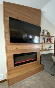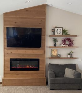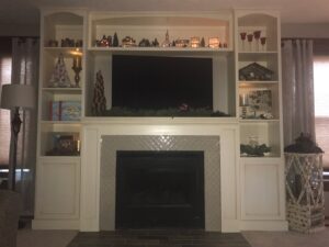 Fire place with mantel & wall shelves